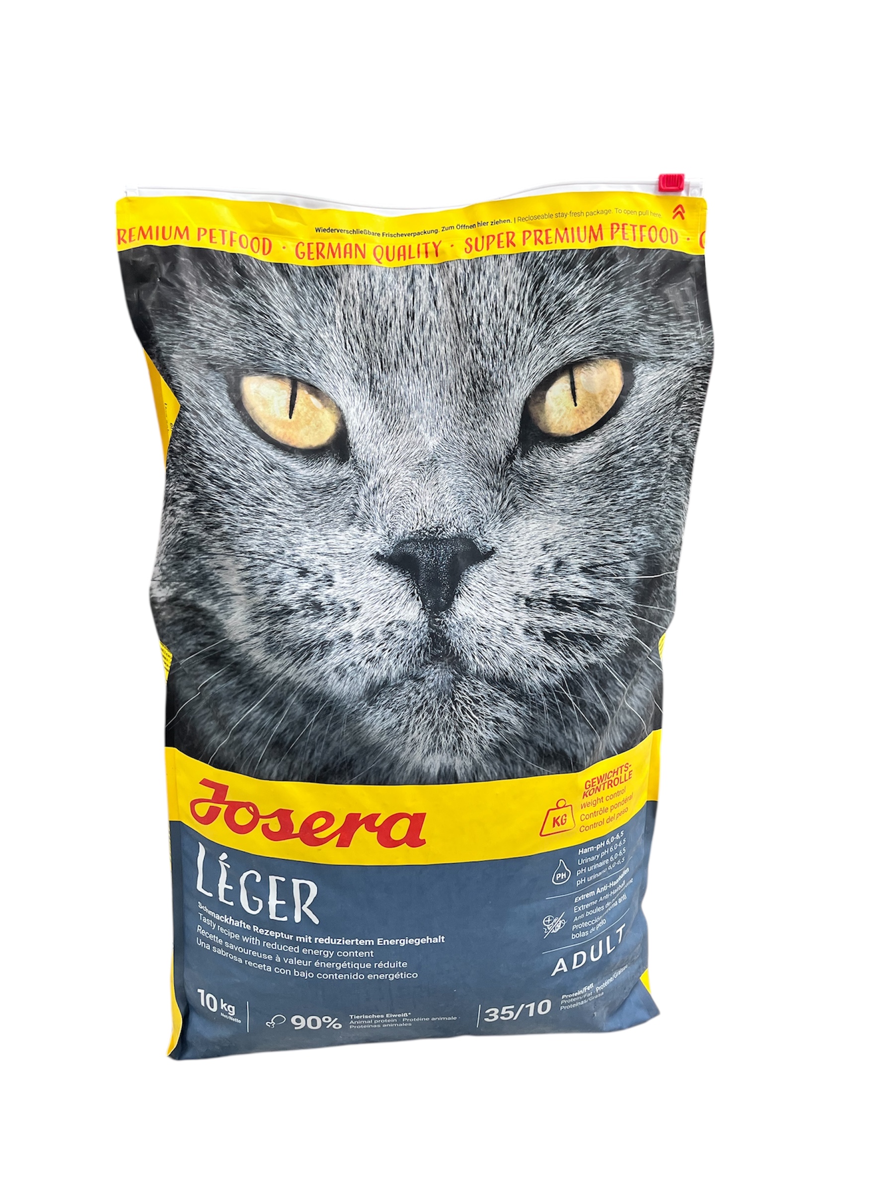 غذای خشک گربه جوسرا مدل JOSERA Léger با کالری کاهش یافته و افزایش سطح فیبر، تغذیه مناسبی برای گربه های کم تحرک یا گربه هایی است که مستعد اضافه وزن هستند.(مانند گربه های عقیم)